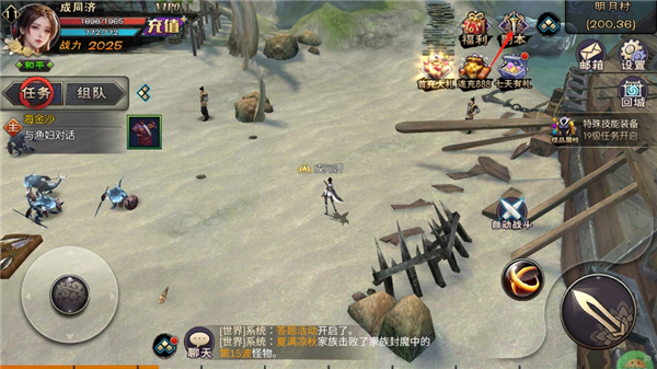 玩家可以传说中的神墟、古城、寒月境、百兽谷、漠都等进行打怪升级。