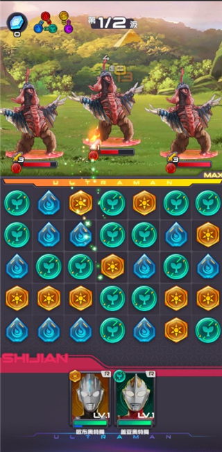 5、游戏的玩法十分有意思,只要玩家们消除宝石,奥特曼就会对怪兽发起进攻;