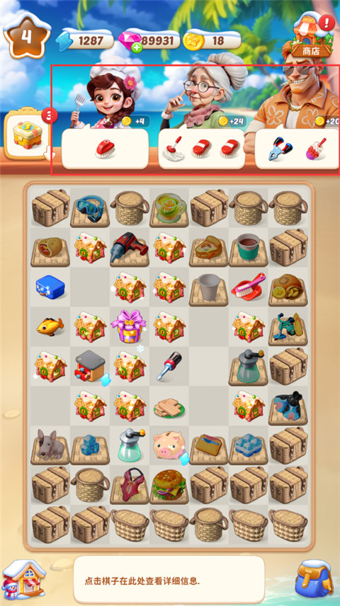 2、在这里可以看见它们需要的物品,当格子中存在着相应的物品后即可获得金币