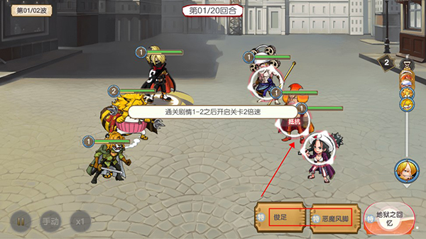 3、剧情对话:每个关卡开始前都有经典剧情对话,让玩家在游戏的过程中也能观看有趣海贼王剧情,放松身心。