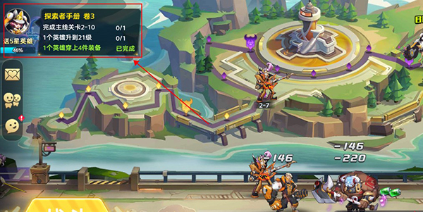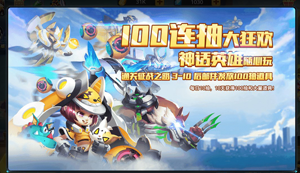 2、通关就送100连抽,玩家通过3-10后即可领取百抽券,轻松抽取稀有英雄。