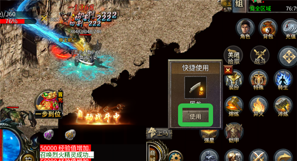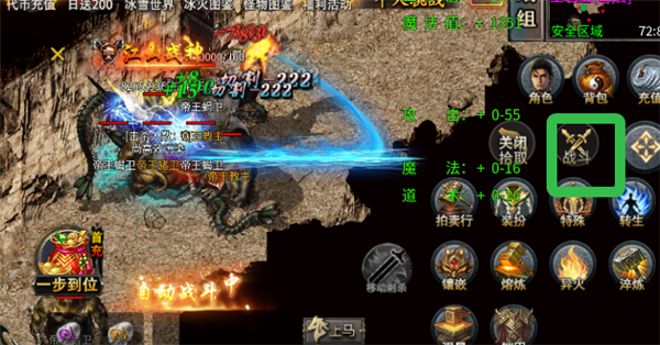 4、点击战斗即可开启自动战斗,双击地面即可退出该状态。