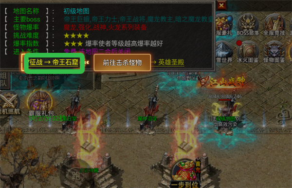 2、点击前往帝王石窟击杀怪物。