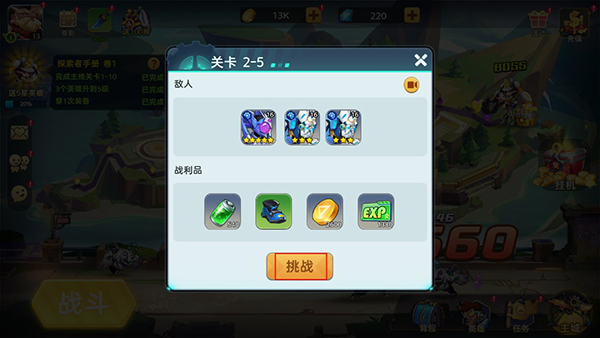 1、游戏以主线闯关玩法为主,通过关卡可以获得大量资源奖励,轻松提升战力。