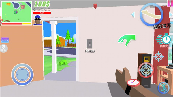 4、玩家可以控制角色在房间外面的世界中自由的探索,可以用各种工具袭击路人,比如木棒枪支弹药等