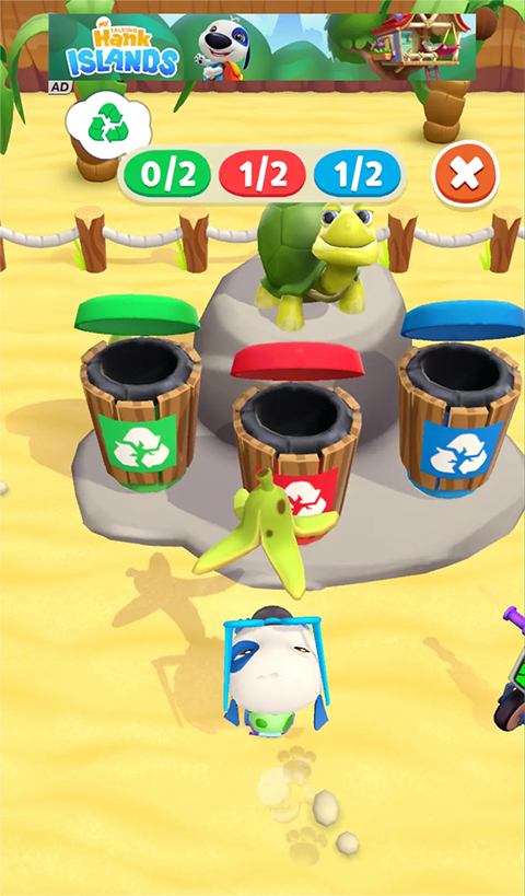 通过你坐在乌龟的硬壳上转动,你需要躲避障碍物,收集金币,同时还能在乌龟的陪伴下,来一场海岛垃圾收集和分类并得到有价值的奖励,净化海岛环境,让大家意识到一连串的小行动都可能产生更大、更环保的影响。
