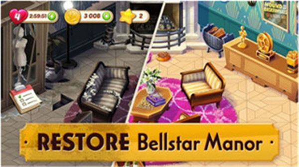 寻找家园英文名为“Penny & Flo”,它是一款极具挑战性翻新豪宅并解决难题的休闲类型益智游戏趣味消除类手机游戏。这款游戏采用了清新又简洁的卡通画风,游戏的玩法非常简单,在这里你要做什么都需要通过消除来完成,相信你一定能够帮助主角们解决他们的问题。在游戏里面玩家可以帮助Penny和Flo将前好莱坞女星的豪宅翻新为昔日的荣耀,游戏里面可以发现很多的隐藏区域,玩家不仅可以体验消除的乐趣,同时还可以翻修自己的豪宅,游戏中具有数百种家具可供玩家自由的选择搭配,快来一起将豪宅翻新为昔日的荣耀吧。
