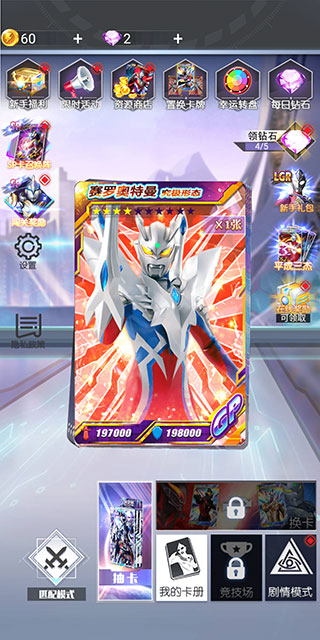 3、经典卡牌收集系统,传奇光之巨人悉数登场,超级怪兽再起波澜。