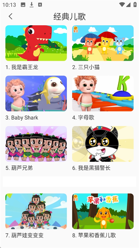 2、儿歌大全,歌单模式,精心推荐,找歌不用愁。