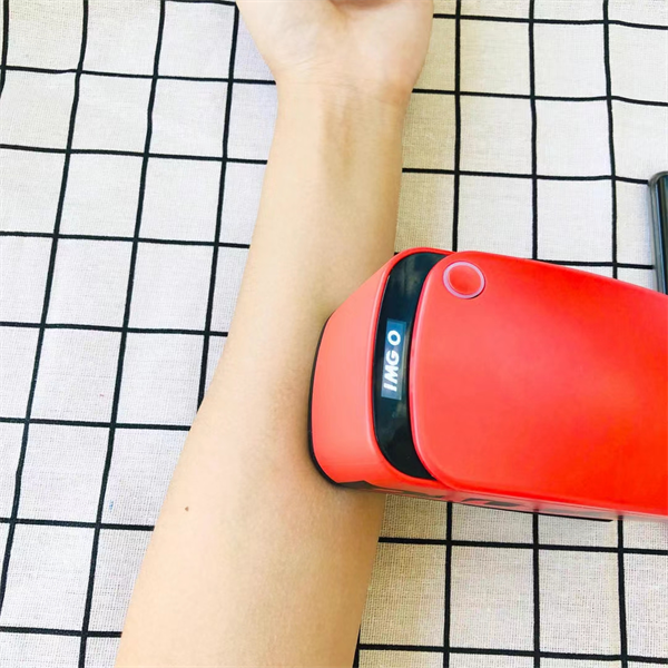 然后在纹身部位喷上纹身喷雾,这时候就可以按机器上的圆形按钮,等待几秒,显示GO的时候就可以开始滑动机器在皮肤上纹身咯!纹好了再喷一下喷雾~增强防水性。(注意纹身前打开机器底部的滑盖~)