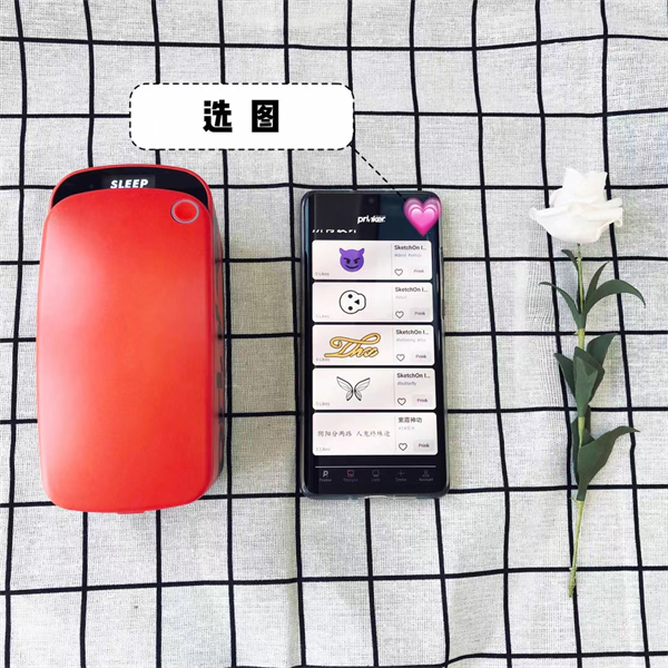 Prinker应用程序允许用户将选定的图案传输到Prinker设备上,用户可以通过蓝牙将设备与智能手机或平板电脑连接,然后将所选图案发送到设备进行打印。