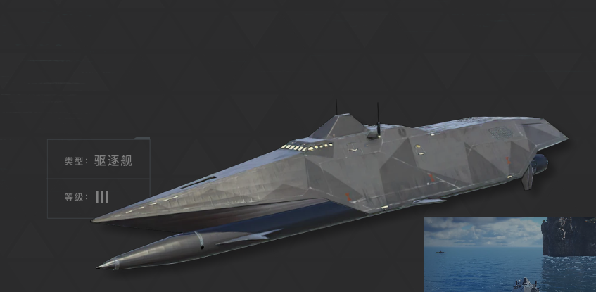 “红朗姆”号虚构架空设定:隐形水翼驱逐舰设计概念为搜索及摧毁潜艇。