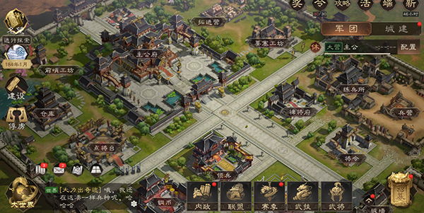 游戏首创双沙盘玩法,玩家除了在大世界中与其他玩家斗智斗勇,也可以选择在自己专属内城中经营发育,和名士良将互动交流,三国有更多可能。