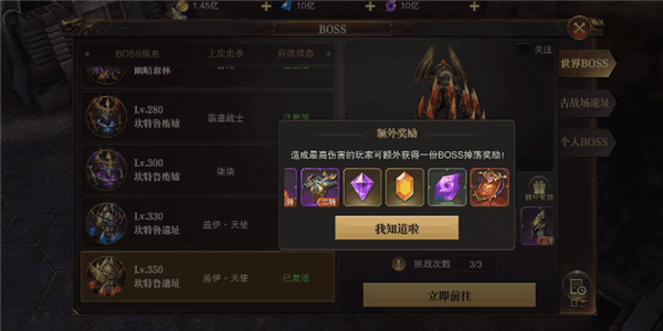 5、【挑战BOSS】挑战boss掉落稀有皮肤、珍藏副本、跨服PK挑战等丰富内容