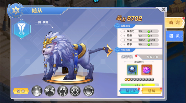 消耗资源提升坐骑的等级是战力获取的非常重要的途径。