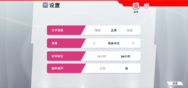 2、游戏一开始就是中文显示,无需设置,如有需要,可以在主页点击“选项”,选择语言,切换为“简体中文”即可。