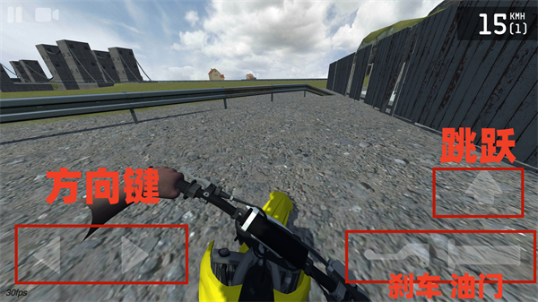2、游戏的操作也很简单,左侧按钮控制方向,右侧↑按钮可以控制摩托车抬头,而下侧两个按钮则是刹车键与油门键;