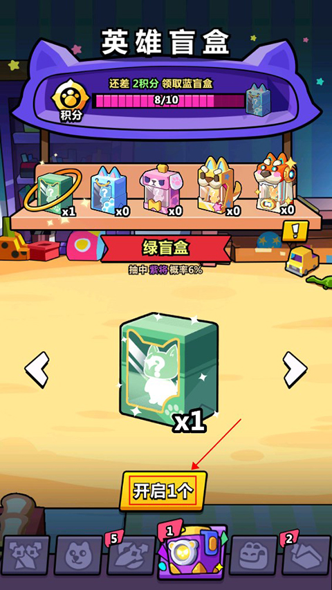 4、玩家在关卡挑战时可以获得宠物英雄盲盒,有几率开出英雄,盲盒级别越高,开出的宠物品质就越高。