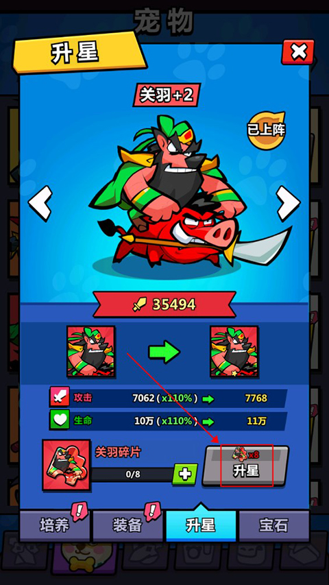 6、玩家在获得足够的宠物后还能进行升星进阶,提高宠物星级。