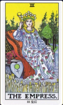 魅力的女皇坐在优雅舒适的椅子上,四周是-篇茂密的森林,人有种无忧无虑、悠闲自得的感觉,椅子旁还放着-颗心, 似是她有心赏赐给你这些肥沃的土地和果实。圆满的爱,应该好的谢恩了。