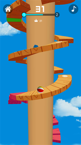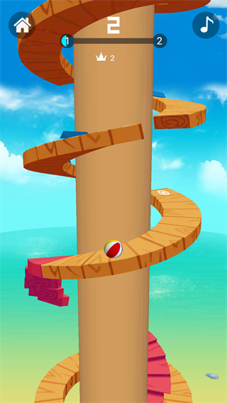 旋转、跳跃,你能爬上几层呢?今天小编要给大家推荐一款休闲小游戏——球球跳跳塔官方版,玩家在游戏中需要通过点击屏幕来控制球球的跳跃,永远不要停止向上的步伐,游戏整体采用了生动的视觉效果,有着令人上瘾的跳跃感,对玩家来说不仅仅可以锻炼肢体,眼睛和大脑的协调,同时还可以享受巨大的游戏乐趣,游戏的整体玩法很简单,一个没有终点的旋转楼梯,你需要做的就是通过跳跃避开游戏中的任何阻碍,遇到尖锐的突起以及没有楼梯空白处记得一跃而过,向上途中还有绿色的小心机块哦,如果躲避不及就只能重新开始游戏了。