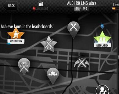 1、黄色星星有个瓶子的,可以理解为检验你爱车配置的比赛,在这个模式里,你每赢一场后它都会有新的配置要求,每场的奖金也会递增,相当可观哦。但玩到这个N2O瓶子时我就不知道怎么继续了,车子配置已经爆顶了,估计是要花人民币买。不管它,一样通关。