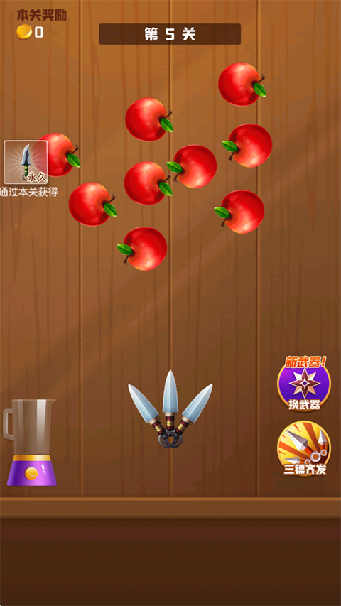 1、王牌切水果随时都可以打发时间玩上一把,非常适合用来打发休闲时光,解锁不同的飞刀进行挑战。