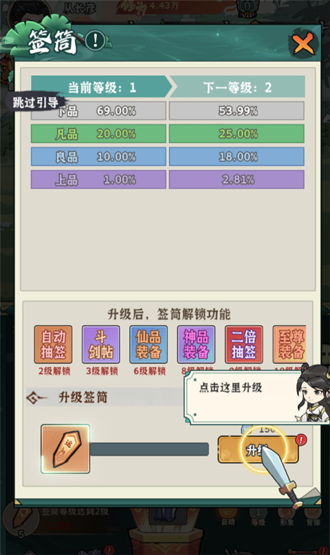 5、当玩家达到一定等级可解锁自动挂机抽签