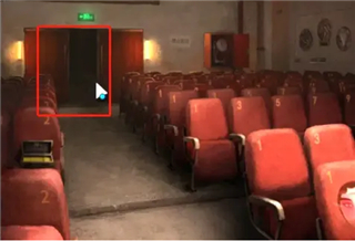 7、打开电源后,返回舞台,此时舞台上的电子屏幕就会亮了,根据红字和排序的提示得知密码为:喜奠丧婚吉嫁,打开观众席上左边的盒子,打开得到化妆笔;