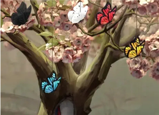 20、点悬浮门进入,将大头贴贴在皮影上触发场景。