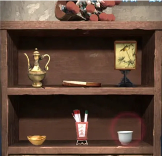 11、返回化妆间,将布偶放化妆间的神台,得到道具房里面坐上架子物件摆放的提示;