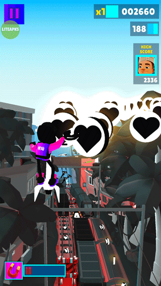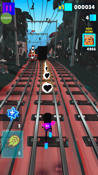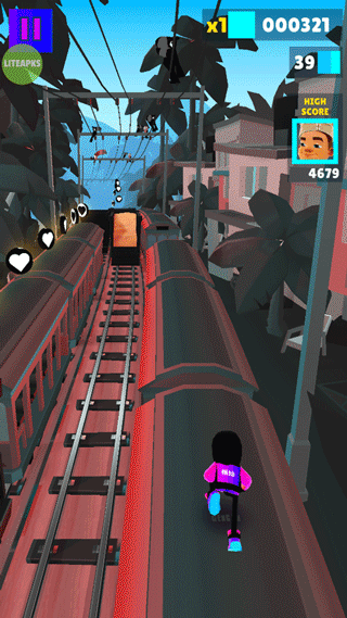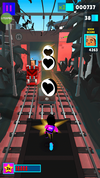 2、它操作简单易上手,只需要滑动屏幕控制主角跳跃、翻滚、切换道路,但游戏并不缺少挑战性。
