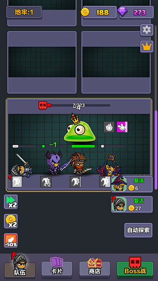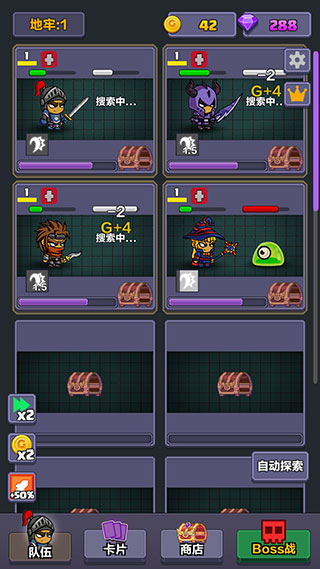 3、组成英雄小队后,您可以探索地牢,获得经验和金币来升级您的英雄。