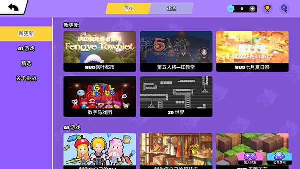 碧优蒂的世界官方正版内游戏地图丰富多样,玩家可以自己创建地图关卡,加入互动社区,与各大创作者分享创作内容,共同交流探索,也可以在社区内体验其他玩家制作的地图,尽享多样化游戏乐趣。