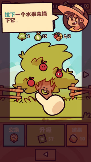 摘取水果的方法也十分简单,点击果树向下拉动,便可成功摘取。