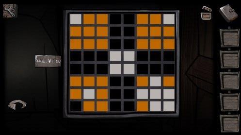 11、根据四本书上的图案调整方块,如上图所示玩家只要将最后一处的后三角变成黑色就可以打开保险箱了。
