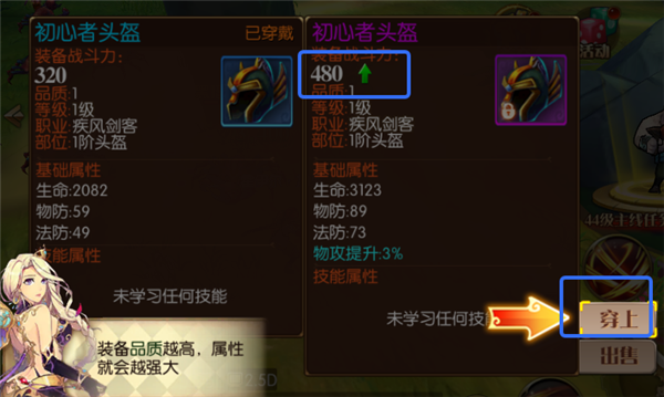 2、战斗中掉落的装备,可查看是否比身上的装备更高级。