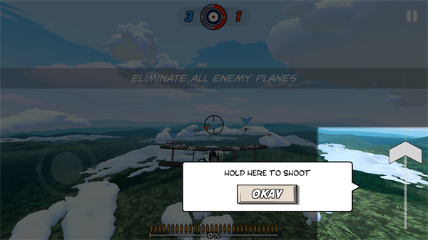 玩家在游戏中将扮演一位一站时期的飞行员,在天空中驾驶各种不同的飞机和敌军进行厮杀,还提供了两种玩法,一种跟着剧情走,完成护航轰炸任务,另外一种则是简单粗暴的1对1PK,考验你的飞机驾驶水平。