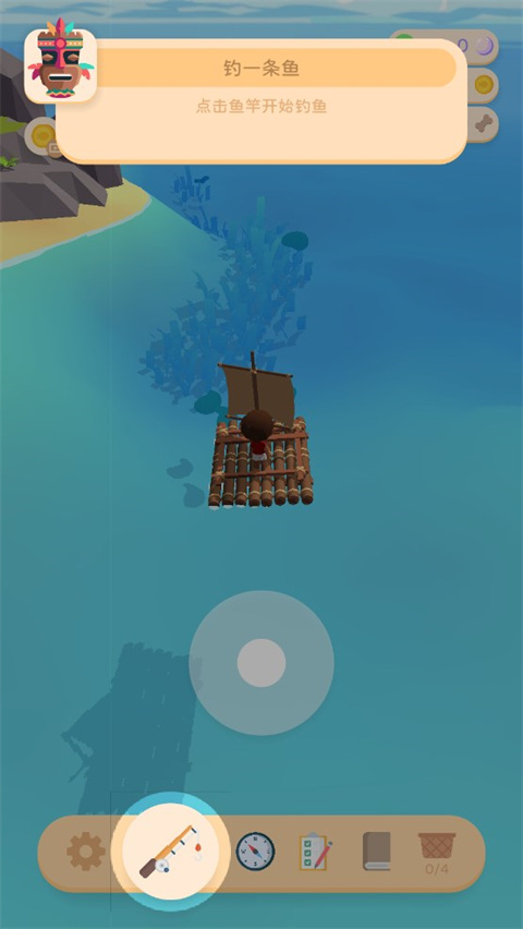 5、点击下方鱼竿开始钓鱼,然后长按瞄准鱼竿;