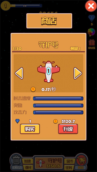 3、点击右下角的商场可以对飞机进行升级和购买飞机;