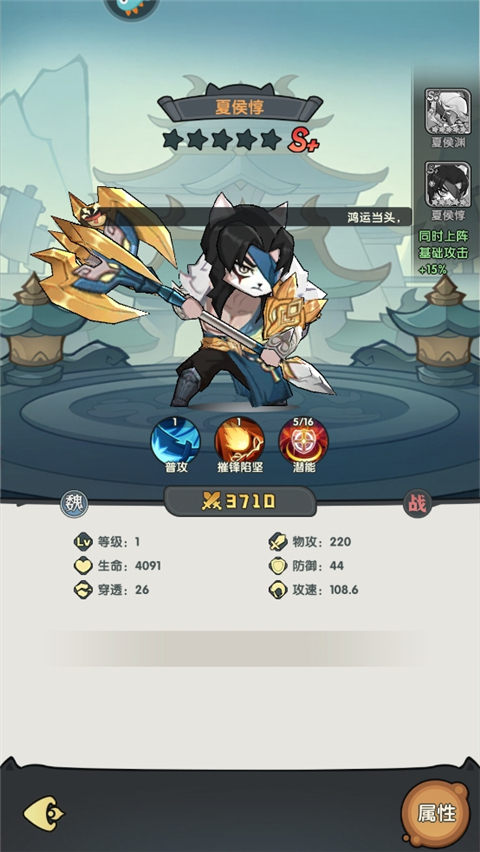 天选英雄是一款以猫咪为主角的三国题材卡牌策略游戏,玩家将化身主公,在Q萌喵将的世界中招贤纳士,排兵布阵!赵云喵、关羽喵、吕布喵等名将化身可爱猫猫齐聚麾下,结合典故与萌趣的卡牌设计,带你在策略博弈中亲历赤壁、官渡等经典战役。