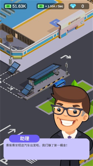1、下载进入客运大亨游戏,通过助理的详细介绍了解工厂;
