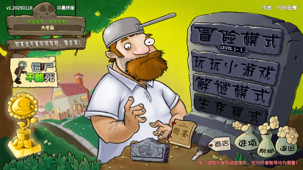 3、除了经典的冒险模式,还新增了“僵尸不能死”模式、解谜模式等,玩家可以根据喜好选择不同的挑战方式。