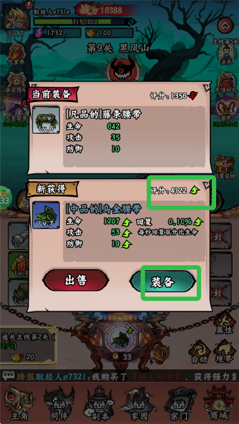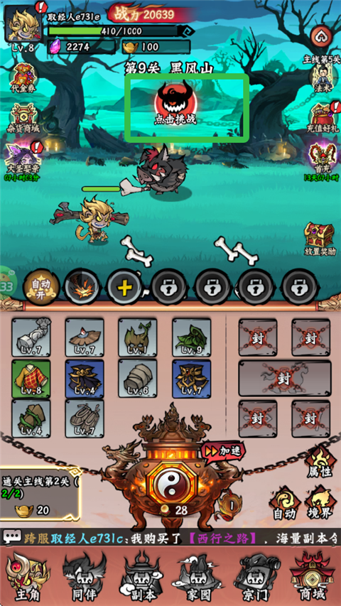 3、开局是个取经人,通过“炼器”获得装备,升级打怪。