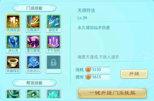 2、升级角色的门派技能、帮派技能。