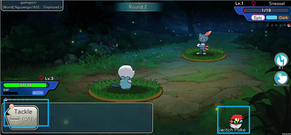 6、进入作战时,点击tackle进行攻击,点击Switch poke进行切换宝可梦。
