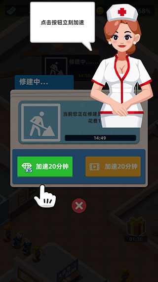 4、加速有两种途径,一是钻石加速,二是看广告加速,倒计时结束后,新科室就能修建成功了。