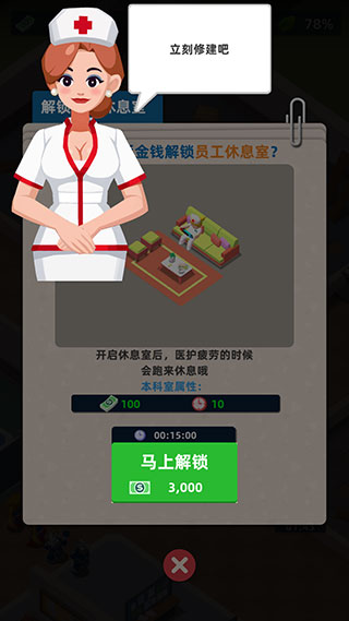 5、以轻松放置为主题的经营游戏,经营自己的医院,招聘了很多员工。