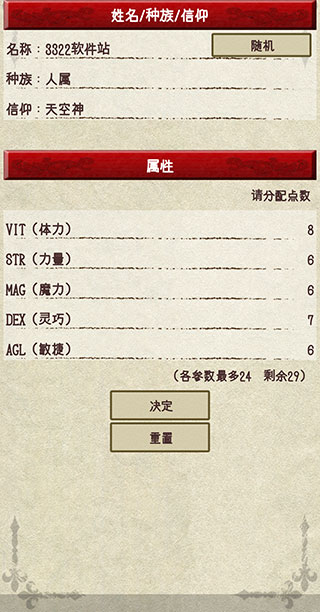 2、编辑名称、分配属性点之后就可以确认创建了。