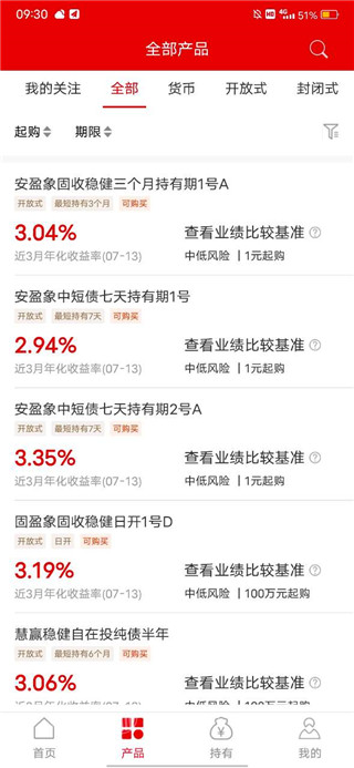 1、产品搜索:可以根据需要进行理财产品的快速搜索查找。